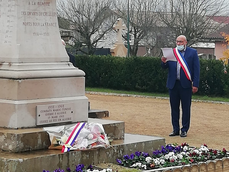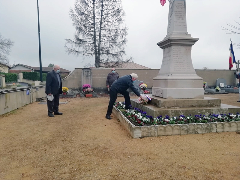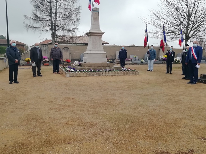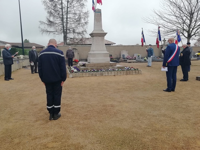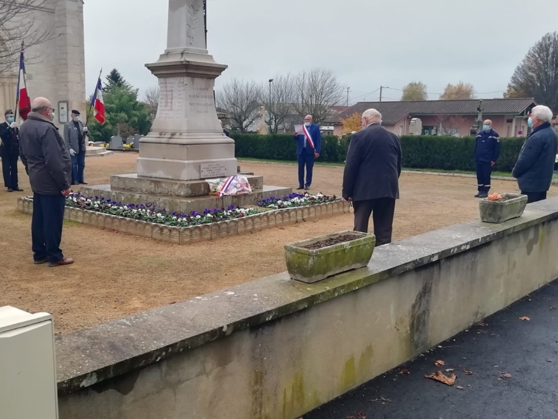 En raison du confinement, la cérémonie commémorative du 11-novembre s’est tenue cette année sans public. Le maire Dominique Boyer et le président de l’association des anciens combattants Gilbert Marmier étaient accompagnés de trois anciens de la guerre d’Algérie, d’un représentant des pompiers et de trois porte-drapeaux pour rendre hommage aux victimes tombées sur les champs de bataille pour défendre la patrie. Après le traditionnel dépôt de gerbe au pied du monument aux morts, les personnes présentes ont respecté une minute de silence conclue par la retentissante « Sonnerie aux morts ». Dominique Boyer et Gilbert Marmier ont pris la parole pour saluer notamment la mémoire des victimes de la grande guerre – parmi lesquelles figuraient 34 jeunes habitants de la commune – en ce jour anniversaire de l’Armistice de 1918, avant une écoute solennelle de l’hymne national.