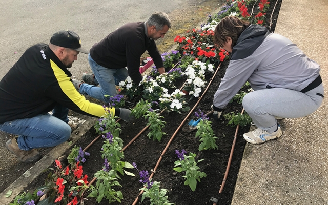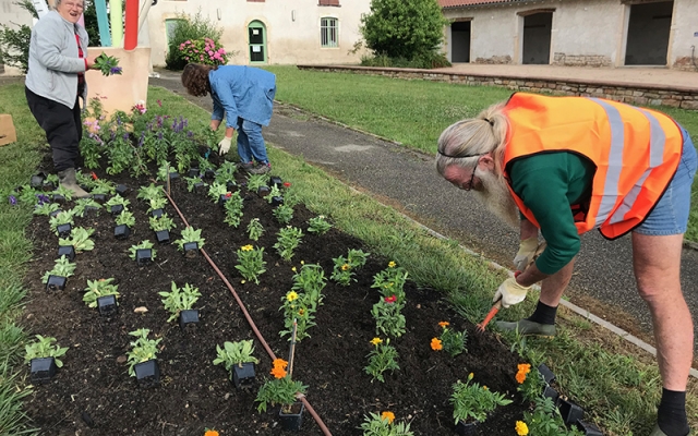 Tôt le matin, les membres de la commission, soulagés d’être épargnés par la pluie, ont positionné les plants à proximité des massifs, en suivant la disposition établie lors des réunions et des visites préparatoires, puis accueilli et réparti les bénévoles qui n’ont pas ménagé leurs efforts pour embellir la commune.