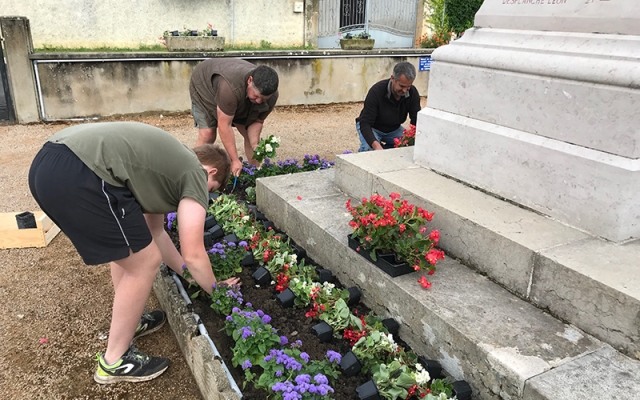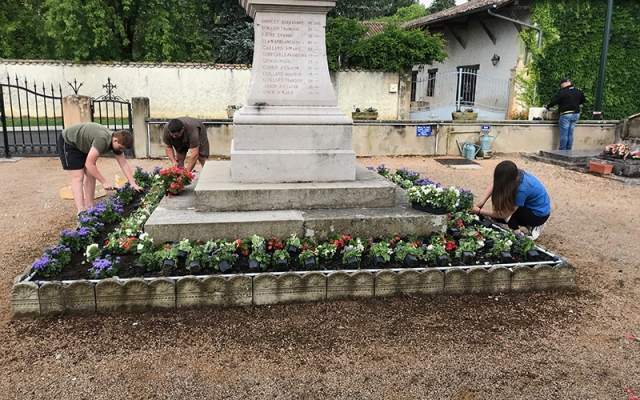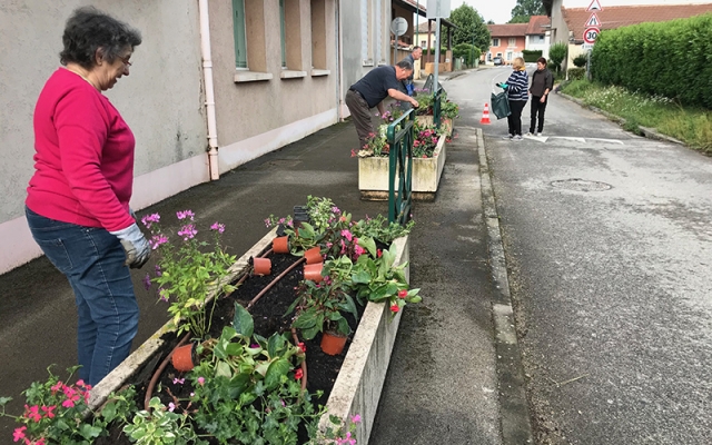 Le massif en face de la mairie a été fleuri en bleu-blanc-rouge, tout comme celui au pied du monument aux morts. Les bacs de la rue des écoles, du cimetière et de la Salle des Fêtes ont accueilli des bégonias et d’autres variétés de fleurs aux couleurs vives. Les bénévoles sont aussi intervenus à proximité de l’école et de la salle polyvalente, puis se sont retrouvés en fin de matinée pour un buffet de l’amitié à l’extérieur de la mairie.