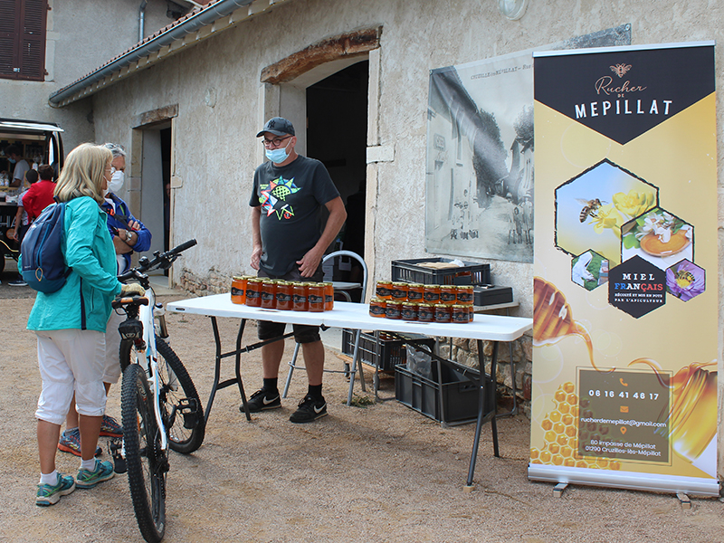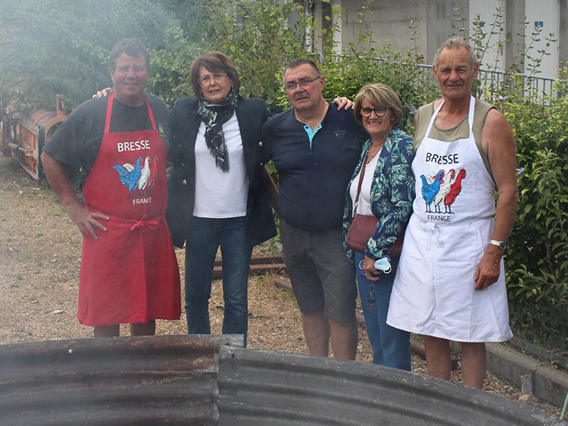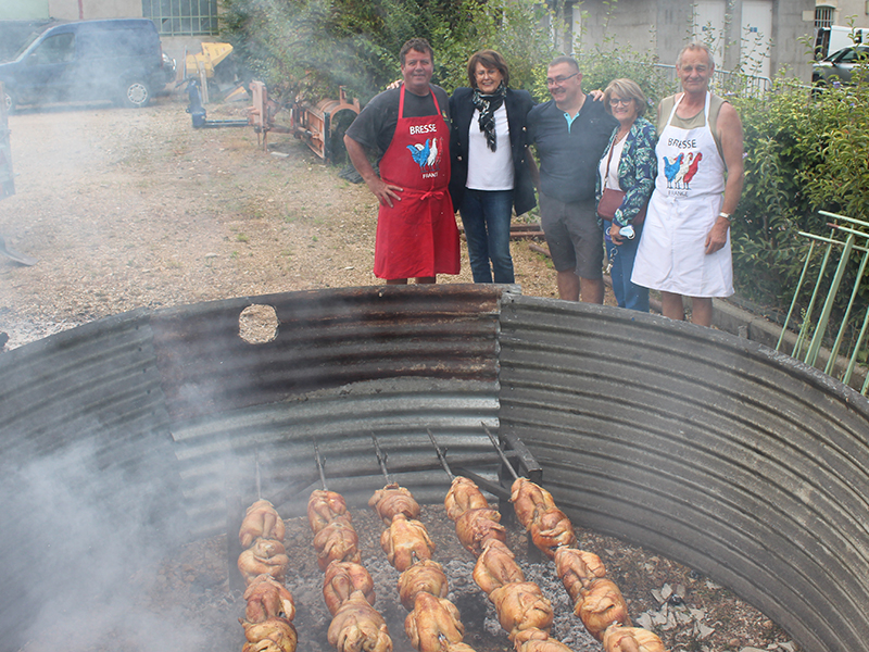 Le vendredi 10 septembre, le marché itinérant de la Veyle était de retour à Cruzilles, avec pour la première fois une vente de poulets de Bresse cuits au feu de bois.