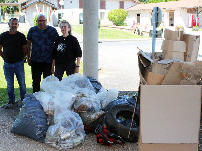 Samedi 7 mai en matinée, une soixantaine de bénévoles (dont un tiers d’enfants) se sont mobilisés pour nettoyer le village, à l’initiative de la commission environnement animée par Corinne Weber. Répartis en petits groupes autour des responsables du Comité de quartiers, les participants ont arpenté les routes et les chemins de la commune pendant 2 heures, munis des plans des secteurs préparés par Pierre-Olivier Contassot, de leurs gilets jaunes ainsi que des gants et des sacs fournis gracieusement par le magasin Super U de Laiz. Résultat : 82 kg de déchets récoltés dont 2 pneus, une tronçonneuse hors d’usage (mystérieusement abandonnée au pied d’un chêne rue des Chambards) et de nombreux cartons et films d’emballage certainement échappés des remorques de quelques usagers des déchetteries. La matinée s’est conclue à la Halle Concordia par un verre de l’amitié et par un quiz de 7 questions sur l’environnement et les déchets (aucun sans faute mais 5 participants dont 2 enfants ont réussi à donner 6 bonnes réponses, bravo à eux !).